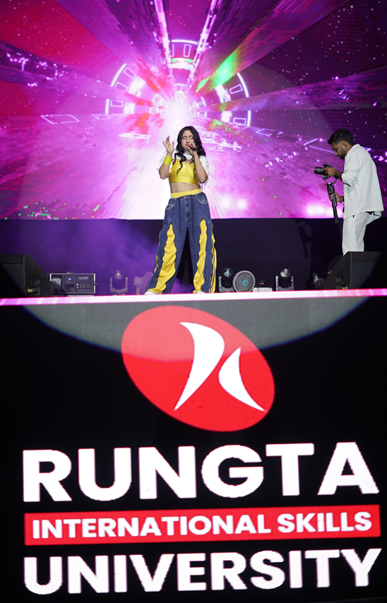 Rungta International Skills University witnessed an unforgettable musical evening as renowned Bollywood singer Nikhita Gandhi delivered a high-energy live performance during the University’s flagship techno-cultural fest.