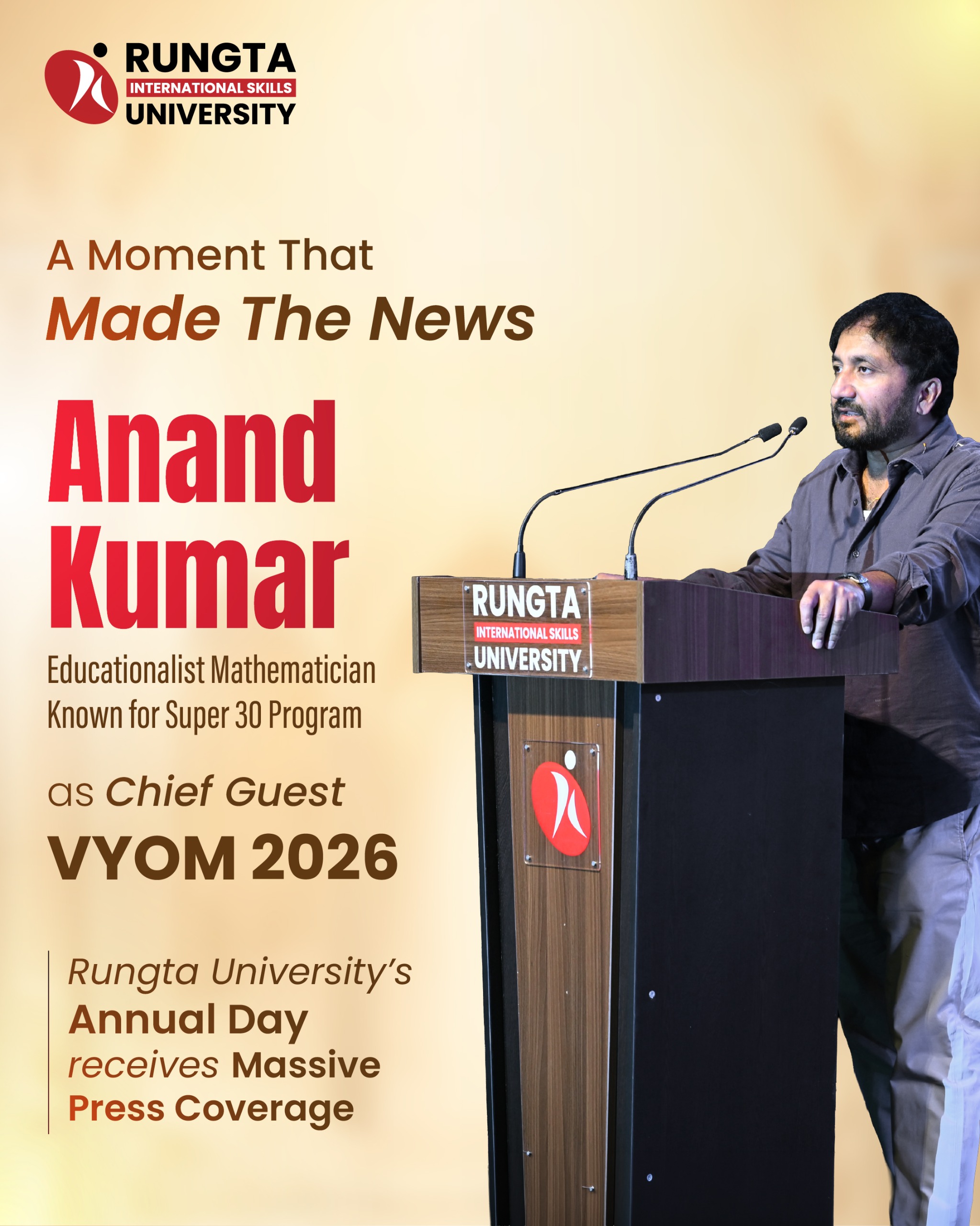 Rungta University successfully concluded its flagship techno-cultural fest, Vyom 2026, leaving behind a powerful blend of innovation, creativity, and youthful energy. The grand finale brought together students, faculty, and guests in a celebration that truly reflected the spirit of learning, competition, and self-expression.