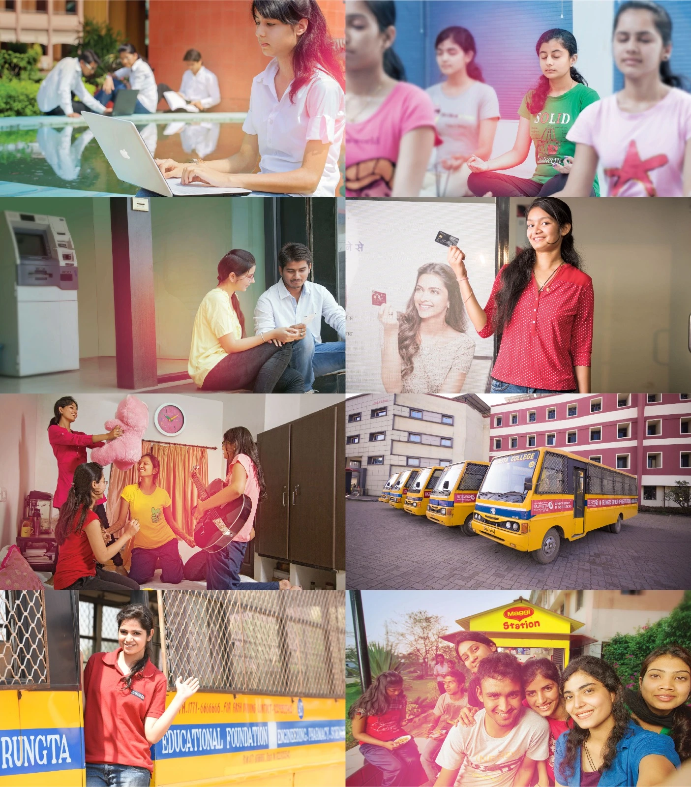 Rungta International University offers comprehensive hostel facilities for boys and girls separately within the College Campus. Caring wardens and vigilant security ensure a pleasant stay, allowing students to focus on academics. The air-cooled residential apartment suites consist of Double/Triple and Four Seater Rooms with an attached bathroom and a sitting Balcony Lounge. The Common Rooms are equipped with a sofa and cable TV.