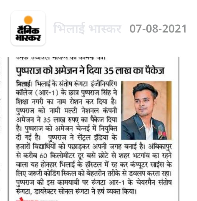 Per annum by Amazon, The Highest package ever offered in Chhattisgarh