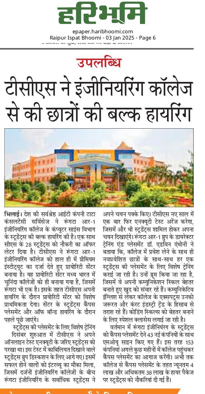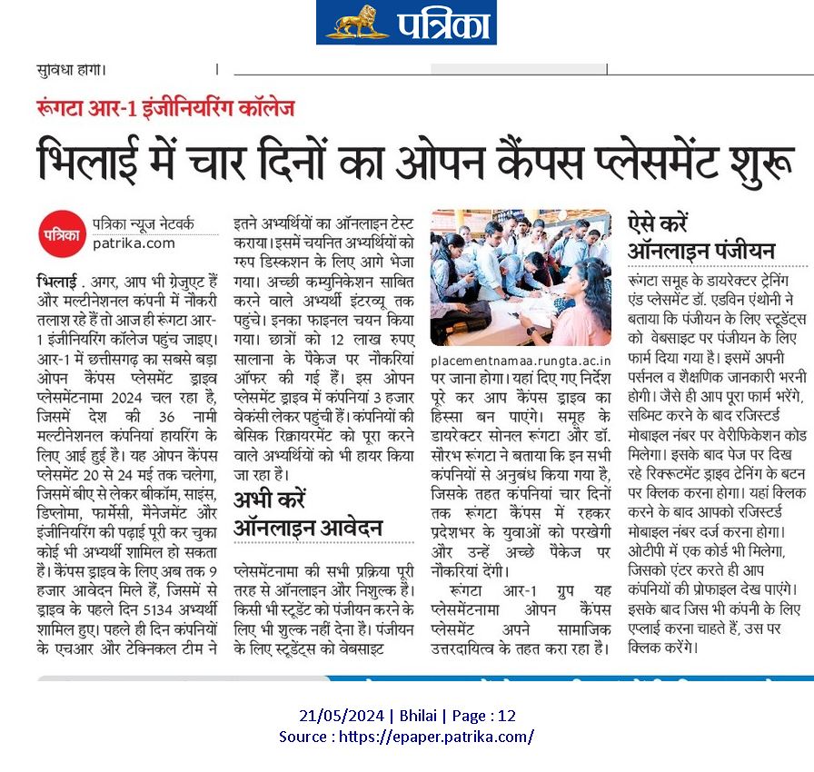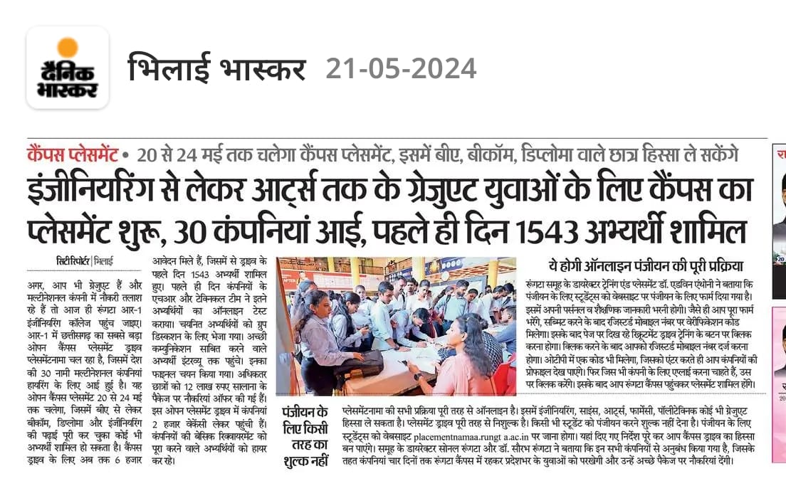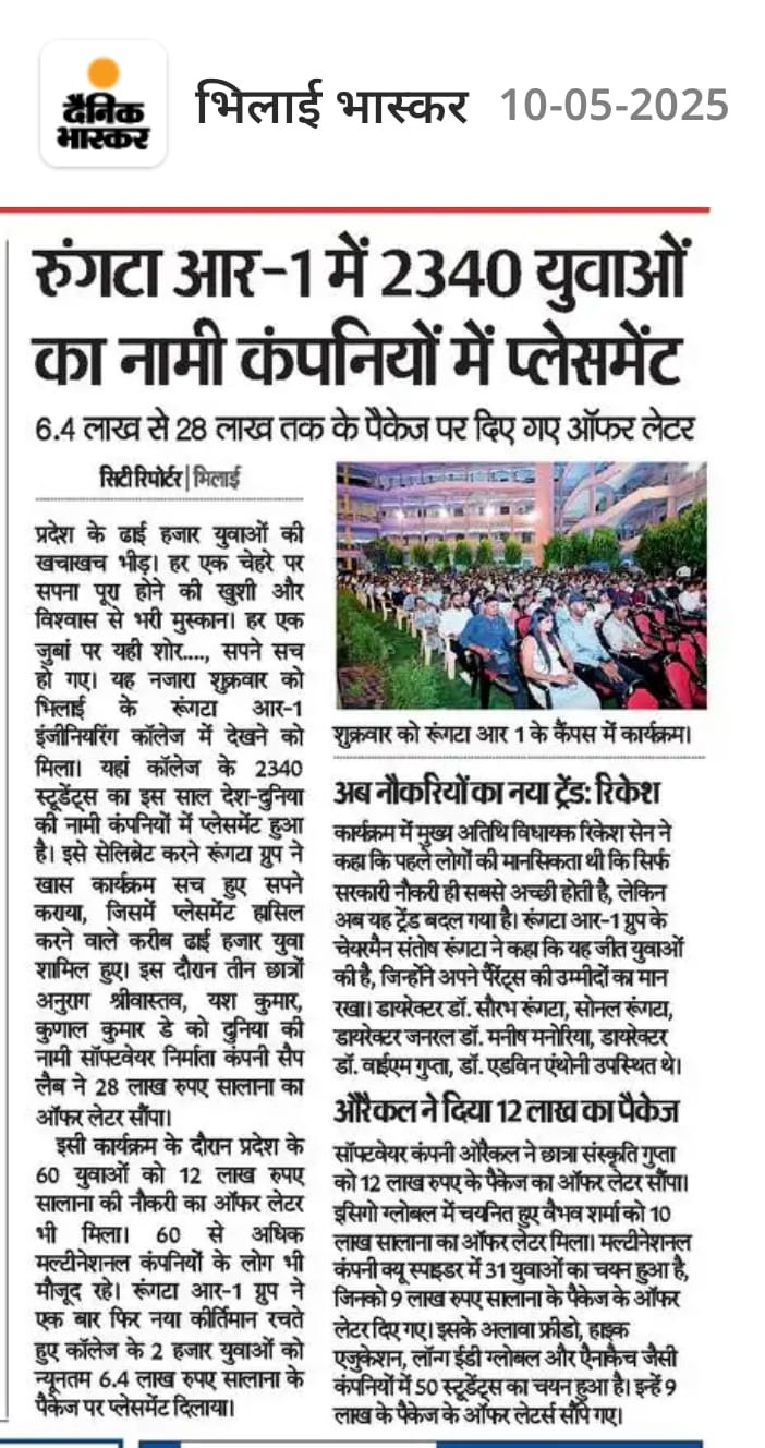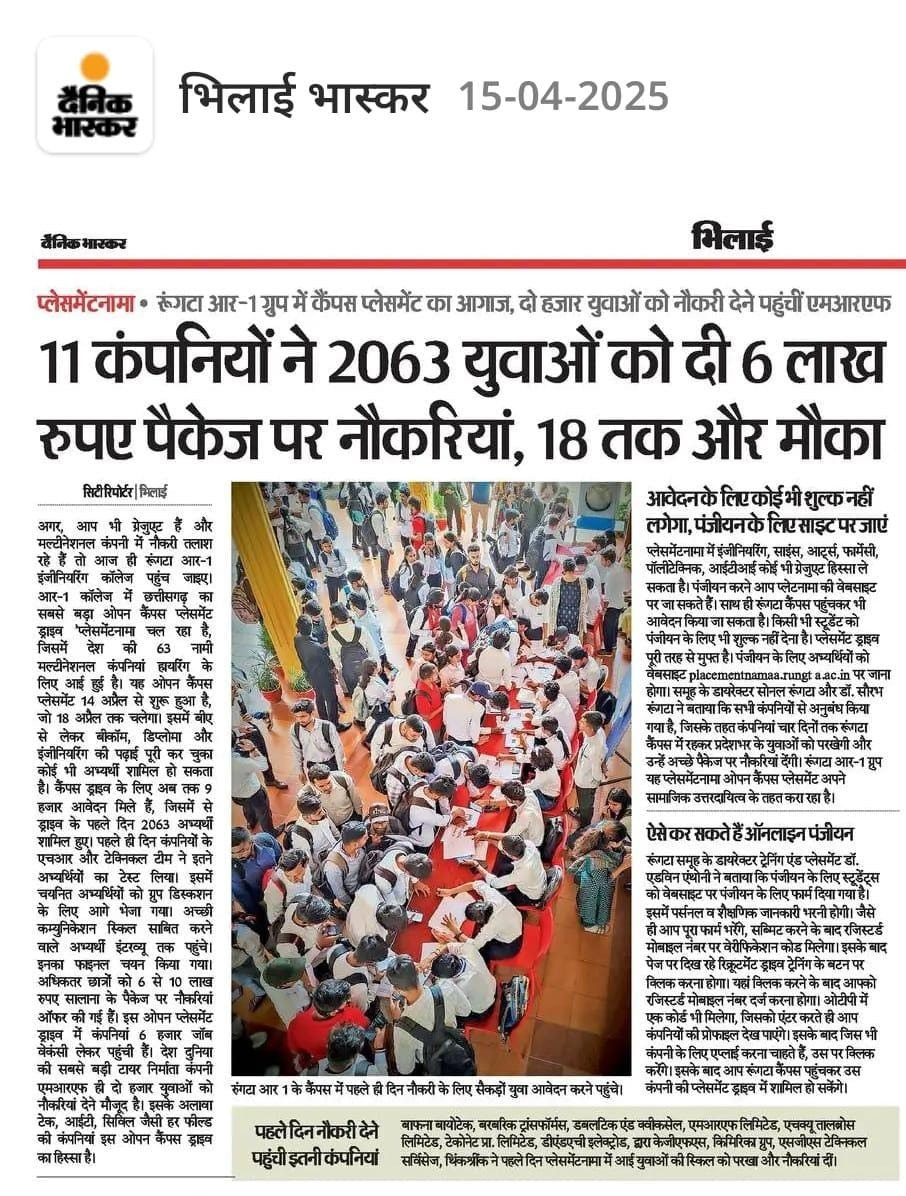 Through diverse placement initiatives, Rungta ensures students are job-ready and empowered to launch successful careers.
