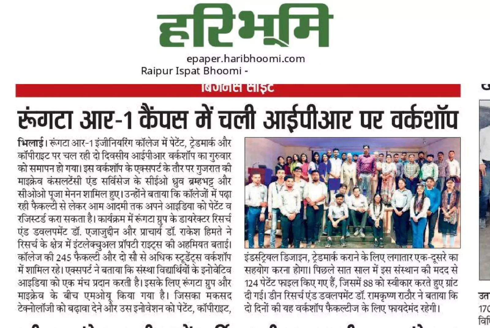 1 | 20-08-2025 | MSME IP Awareness Program | MSME | Rungta College of Engineering & Technology, Bhilai | Dr. Ram Krishna Rathore | 280000 |