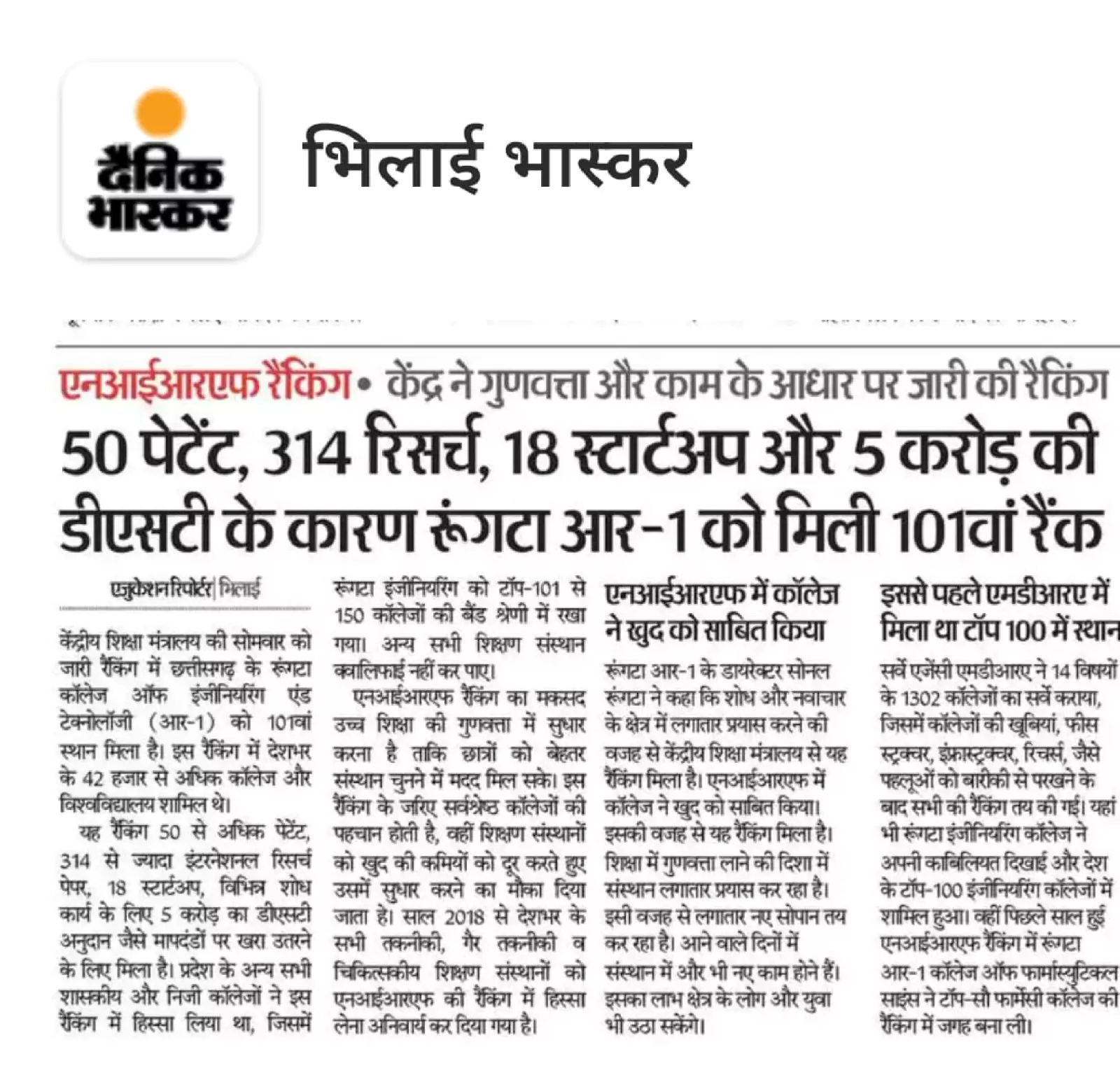 Rungta Group of Institutions has consistently demonstrated excellence in securing a broad spectrum of prestigious research grants from national agencies such as DST, SERB, AICTE, NABARD, MSME, and CGCOST. The cumulative support totals over ₹12 crores, spanning competitive programs in S&T infrastructure, hackathons, development projects, and international conferences. These projects encompass advanced technological domains including artificial intelligence, pharmaceutical formulations, nanotechnology, precision agriculture, environmental management, and materials science, reflecting the institution’s commitment to solving real-world problems and nurturing innovative research ecosystems.